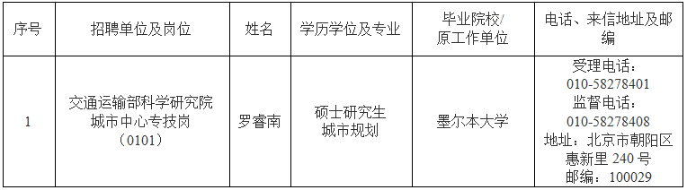 根据事业单位公开招聘工作有关规定,现将交通运输部所属事业单位2025年度第六批统一公开招聘单位拟聘用人员予以公示。公示期间,如有问题,请向用人单位反映,或直接通过中央和国家机关所属事业单位公开招聘服务平台反映。