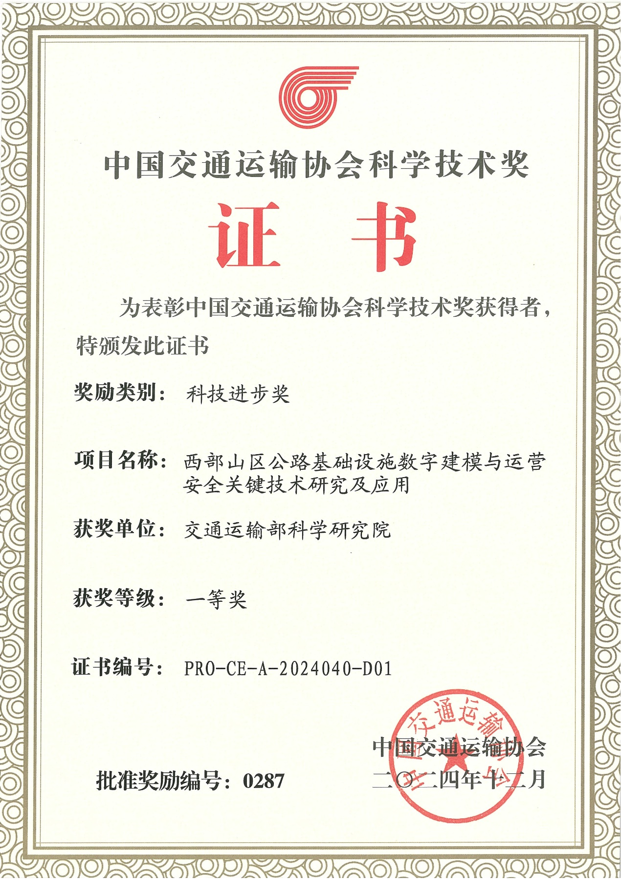 所获奖项:2024年度中国交通运输协会科技进步奖一等奖
