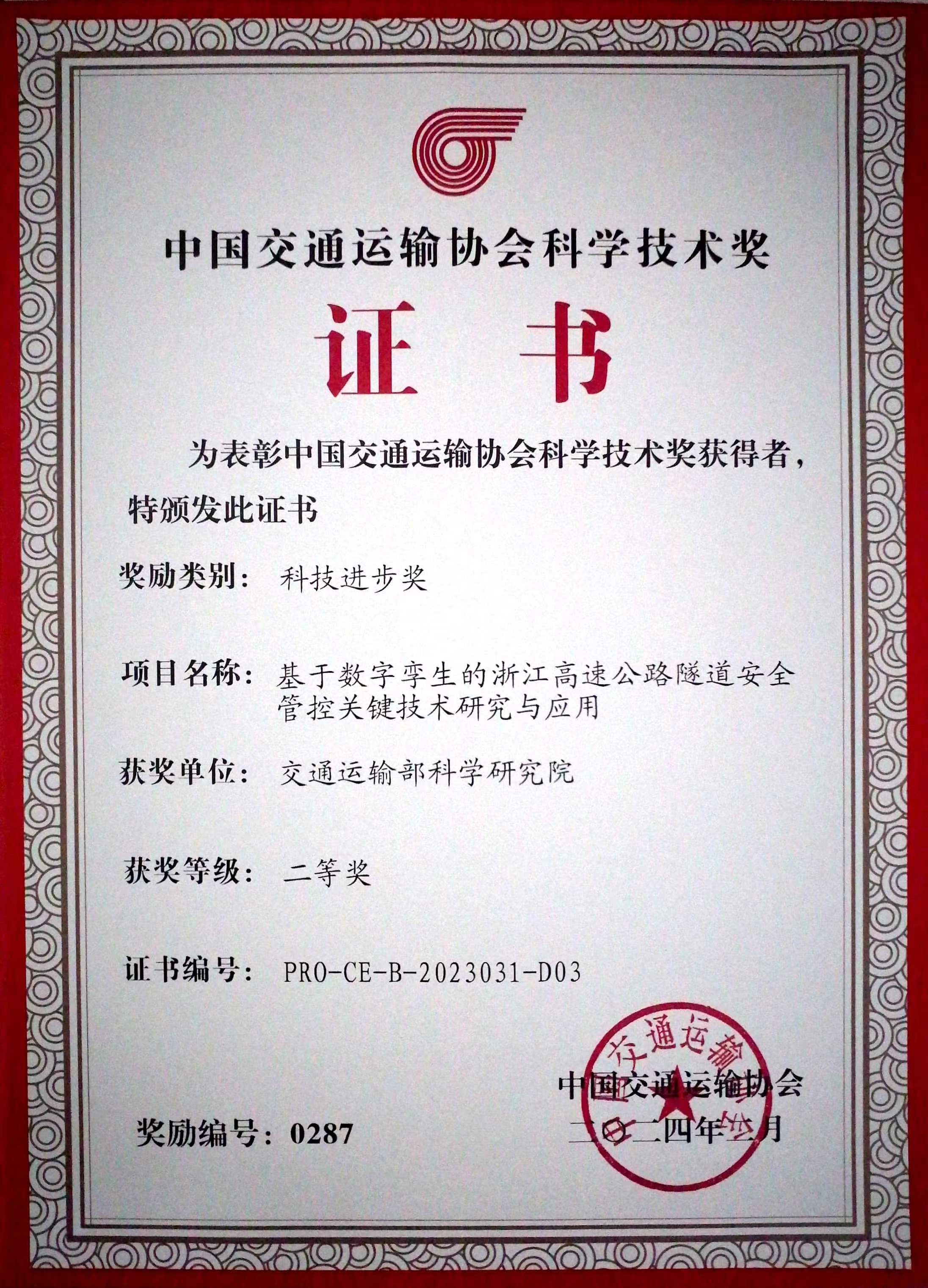 所获奖项:2023年度中国交通运输协会科学技术奖二等奖