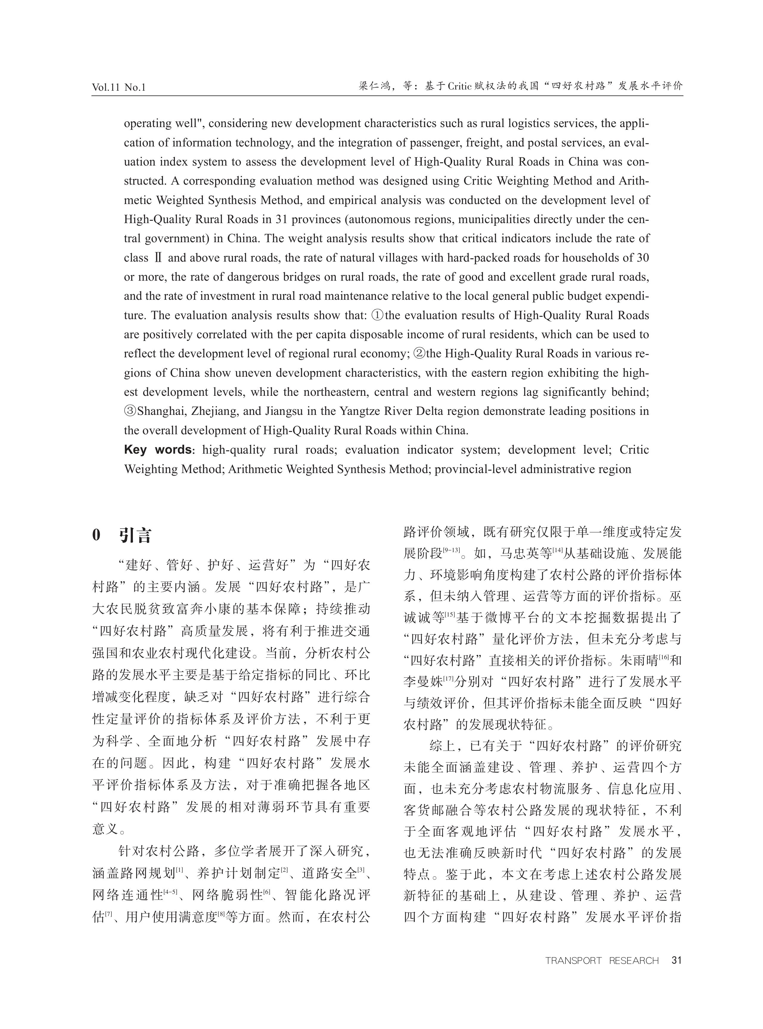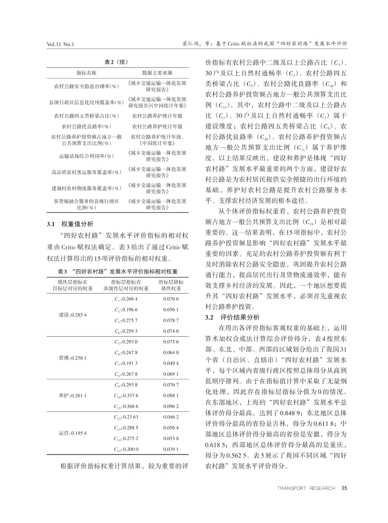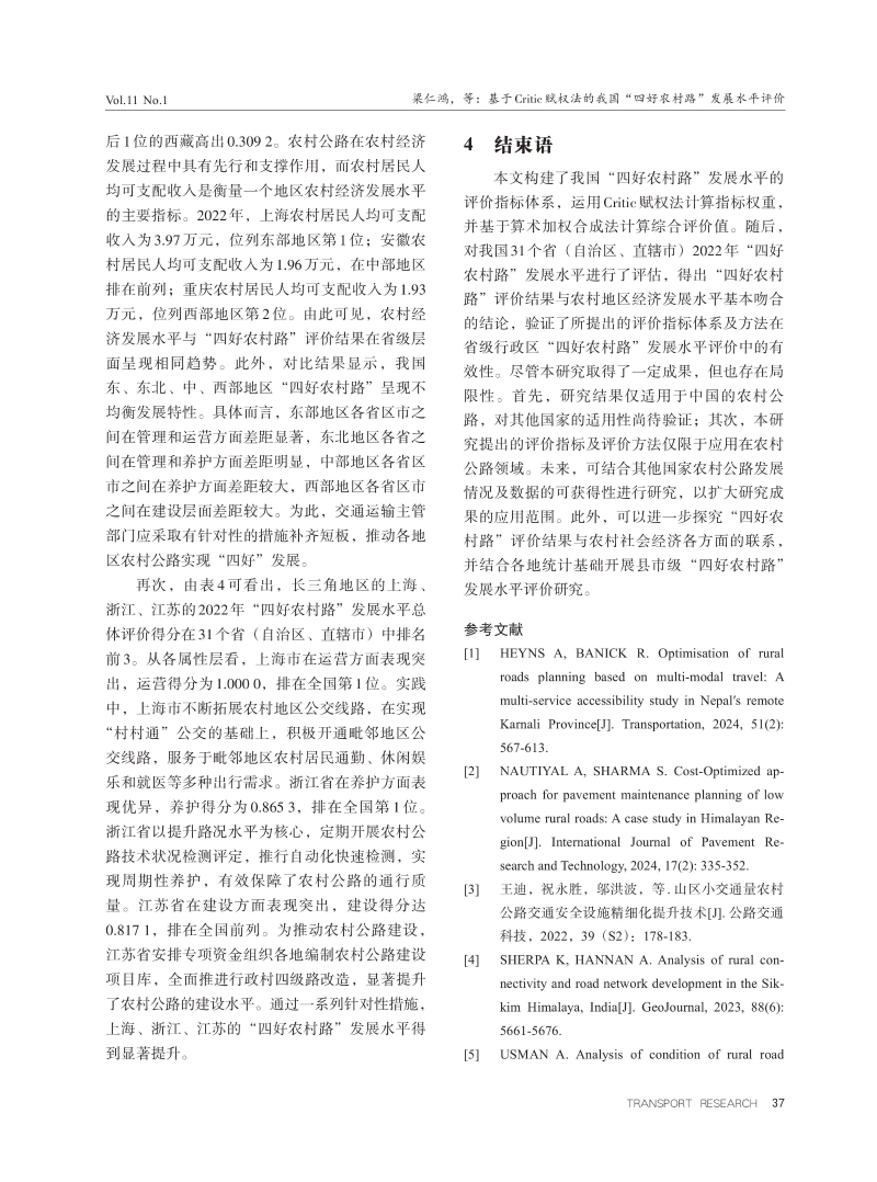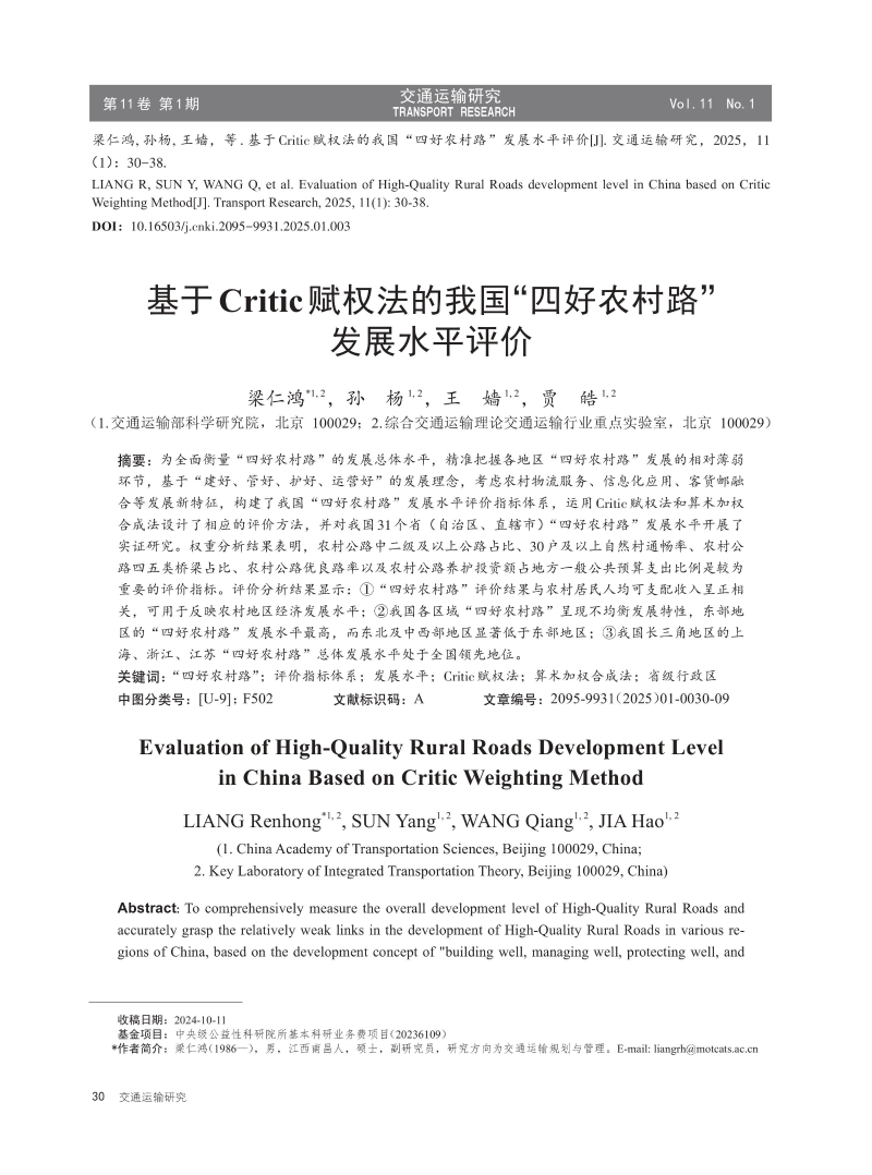 基于Critic赋权法的我国“四好农村路”发展水平评价