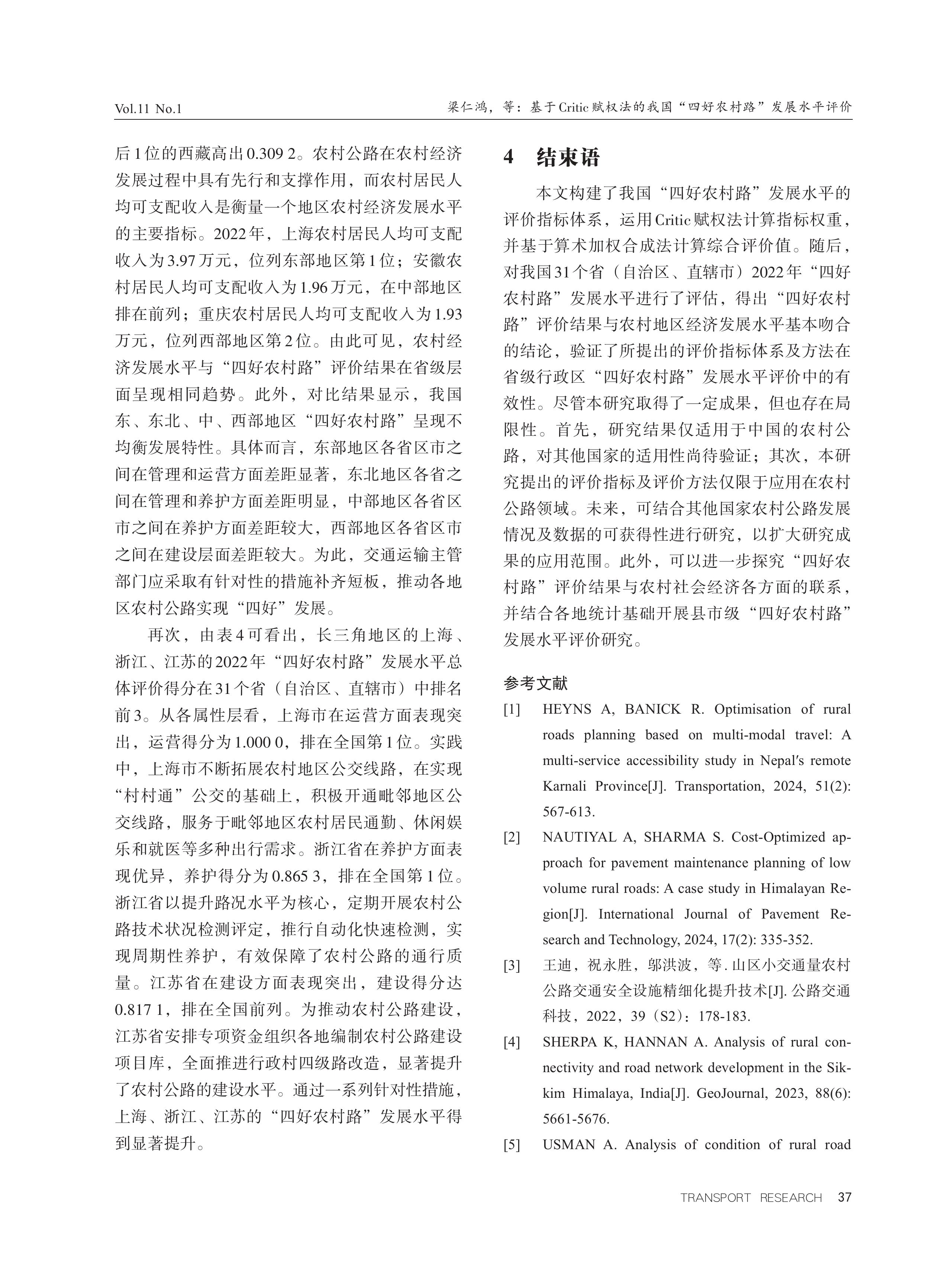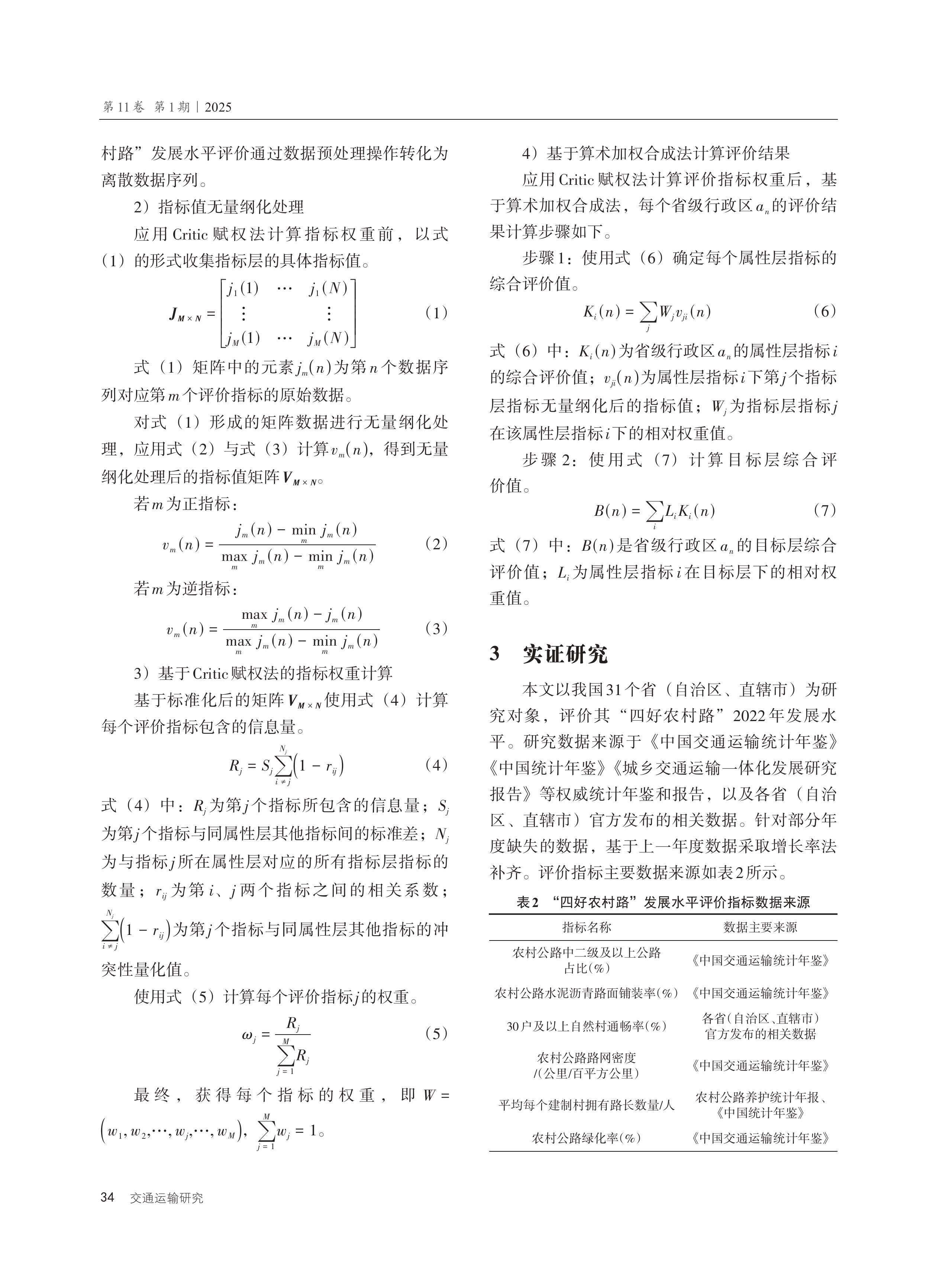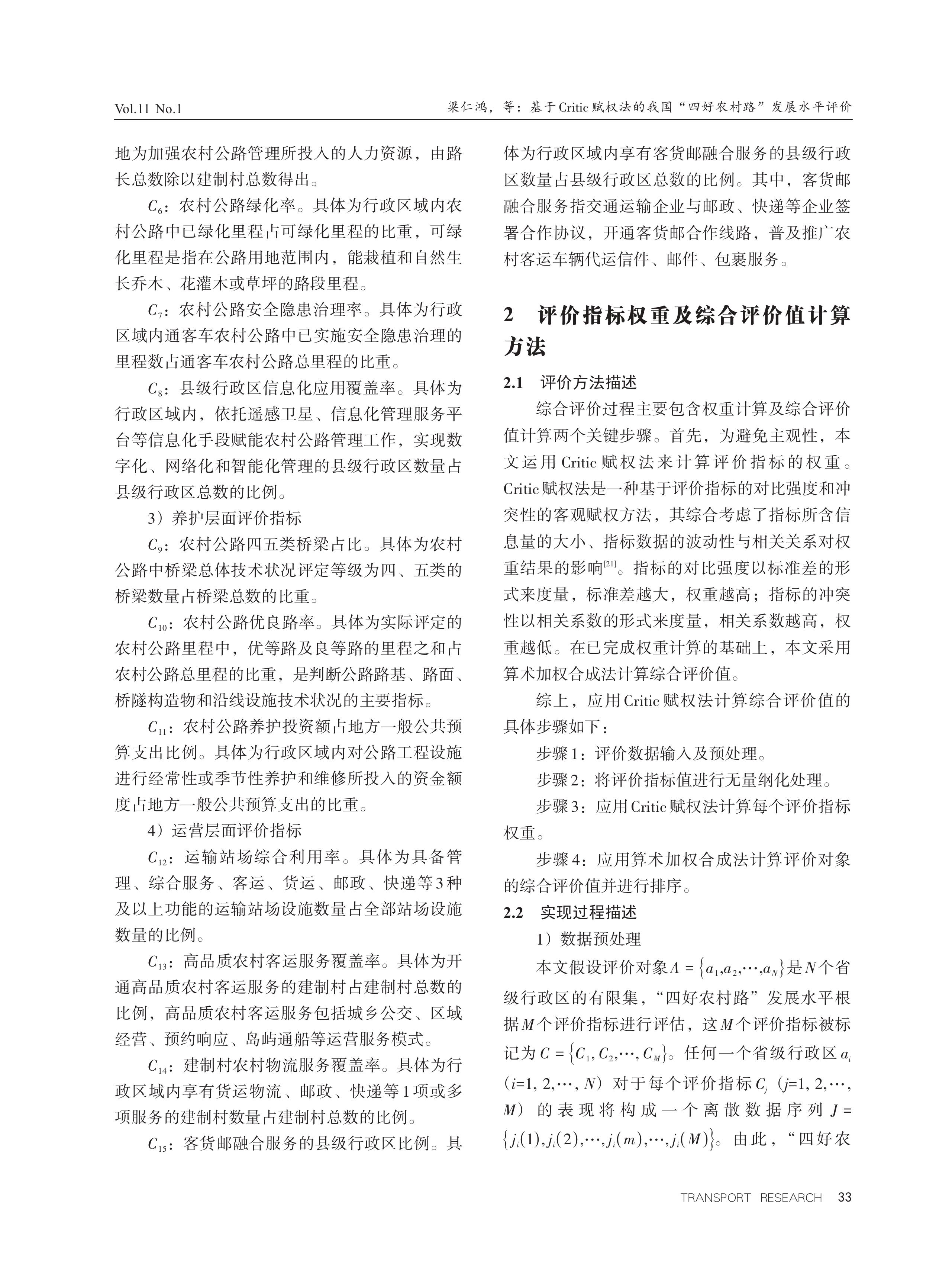 基于Critic赋权法的我国“四好农村路”发展水平评价