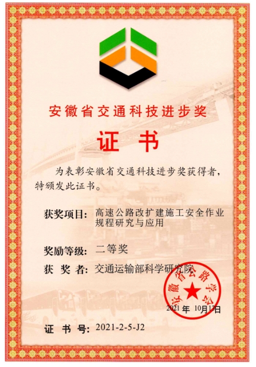 所获奖项:安徽省公路学会交通科技进步奖二等奖