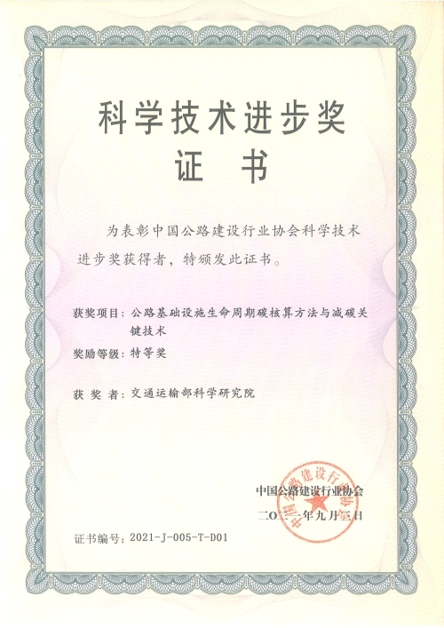 所获奖项:中国公路建设行业协会科学技术进步奖特等奖