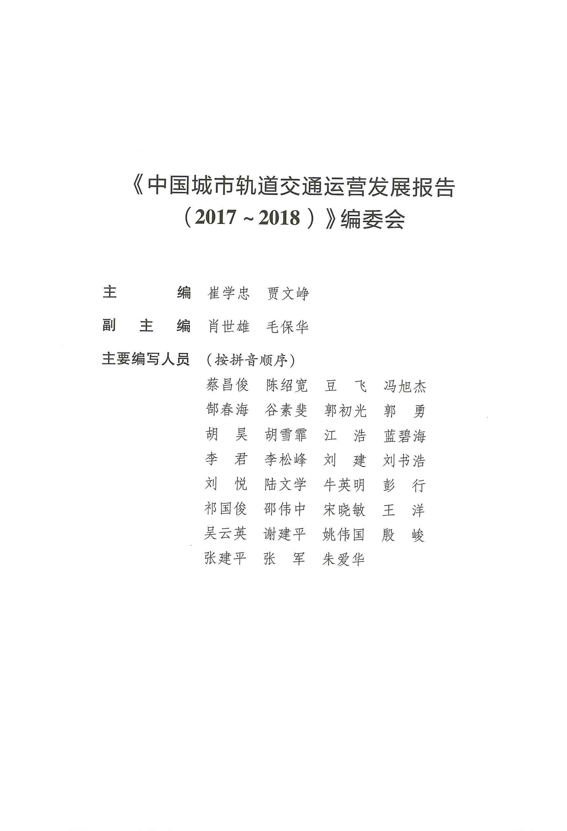 中国城市轨道交通运营发展报告(2017-2018)