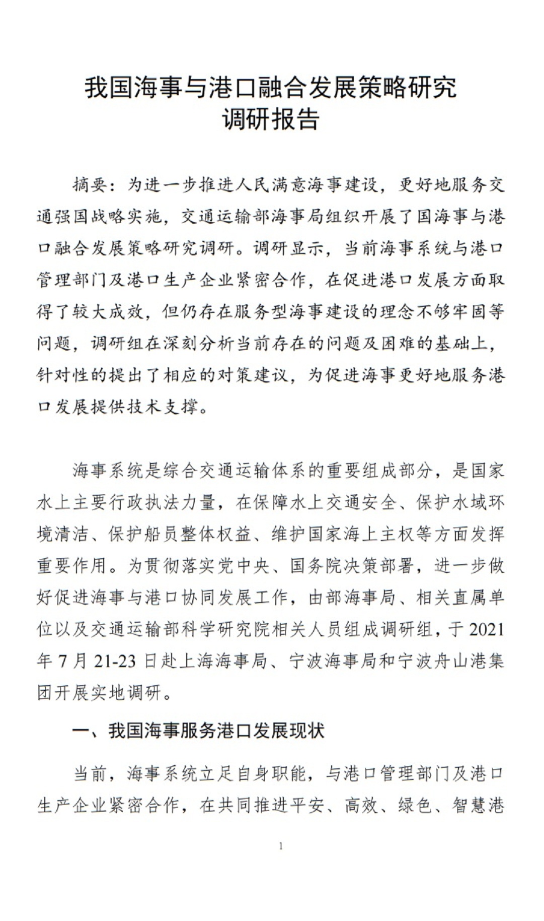 本项目入选2021年度交通运输行业重点科技项目清单。海事系统作为综合交通运输体系的重要组成部分,是国家水上主要的行政执法力量,对于保障水上交通安全、参与全球海事治理体系具有重要意义。本课题旨在研究形成海事与港口协同发展的举措,为水上港口经济高质量发展形成更加有力的支撑提供决策参考。首先,对海事与港口协同发展理论基础进行分析,包括新公共管理理论、新公共服务理论、协同发展理论等。其次,进行海事与港口相关法规政策与机构职能分析,梳理总结近年来直属海事系统在服务和支持港口发展方面出台的政策、制度和举措,分析海事系统在支持港口发展过程中取得的成效;分析海事水上管理及服务的现状,对照交通强国建设要求,提出海事系统在支持港口发展过程中存在的主要问题。最后,针对海事与港口融合发展提出对策建议,以推动高质量发展为主题,提出了海事与港口融合发展的具体策略,包括强化海事服务和协同合作意识、加强协同制度与政策支持、提升船舶进港和货物通关效率、加快推进信息资源共享平台建设等,以及持续优化港口营商环境。