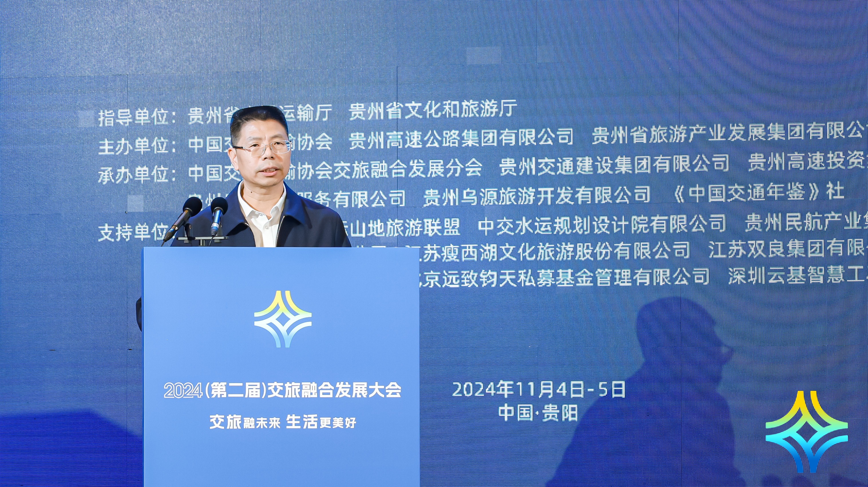 11月4日至5日,以“交旅融未来,生活更美好”为主题的第二届交旅融合发展大会在贵阳顺利召开。大会由中国交通运输协会、贵州高速公路集团有限公司、贵州省旅游产业发展集团有限公司共同主办,我院环境中心作为中国交通运输协会交旅融合发展分会的秘书处单位为大会的筹备和举办提供了技术支撑。来自全国各地的500余名交通运输与文化旅游领域的企事业代表、科研院所和高等院校的专家学者齐集贵阳,共同探讨交旅融合发展新的机遇及未来趋势。交通运输部、文化和旅游部、国家铁路局、国家邮政局、国家铁路集团、中国邮政集团有关人员出席会议。我院陈济丁副院长带队,环境中心的专业技术人员参加了会议。