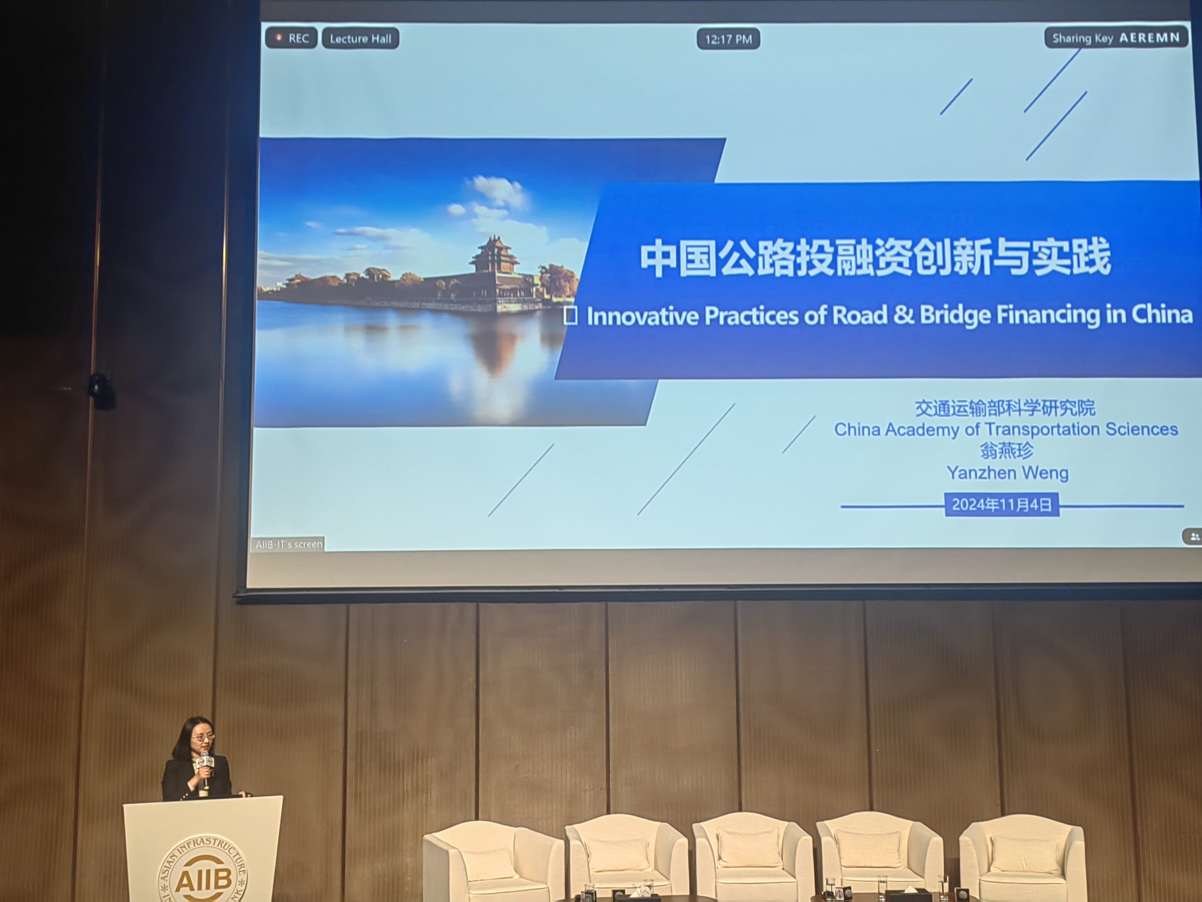 会上,翁燕珍受邀在公路桥梁投融资讨论环节作《中国公路投融资创新与实践》(Innovative Practices of Road & Bridge Financing in China)主题报告,并在圆桌讨论中进行发言。会议期间,刘蕾蕾、翁燕珍与国外交通运输部门官员、亚洲基础设施投资银行有关代表围绕交通投融资、道路可持续发展进行了充分交流,分享各自领域的专业经验。