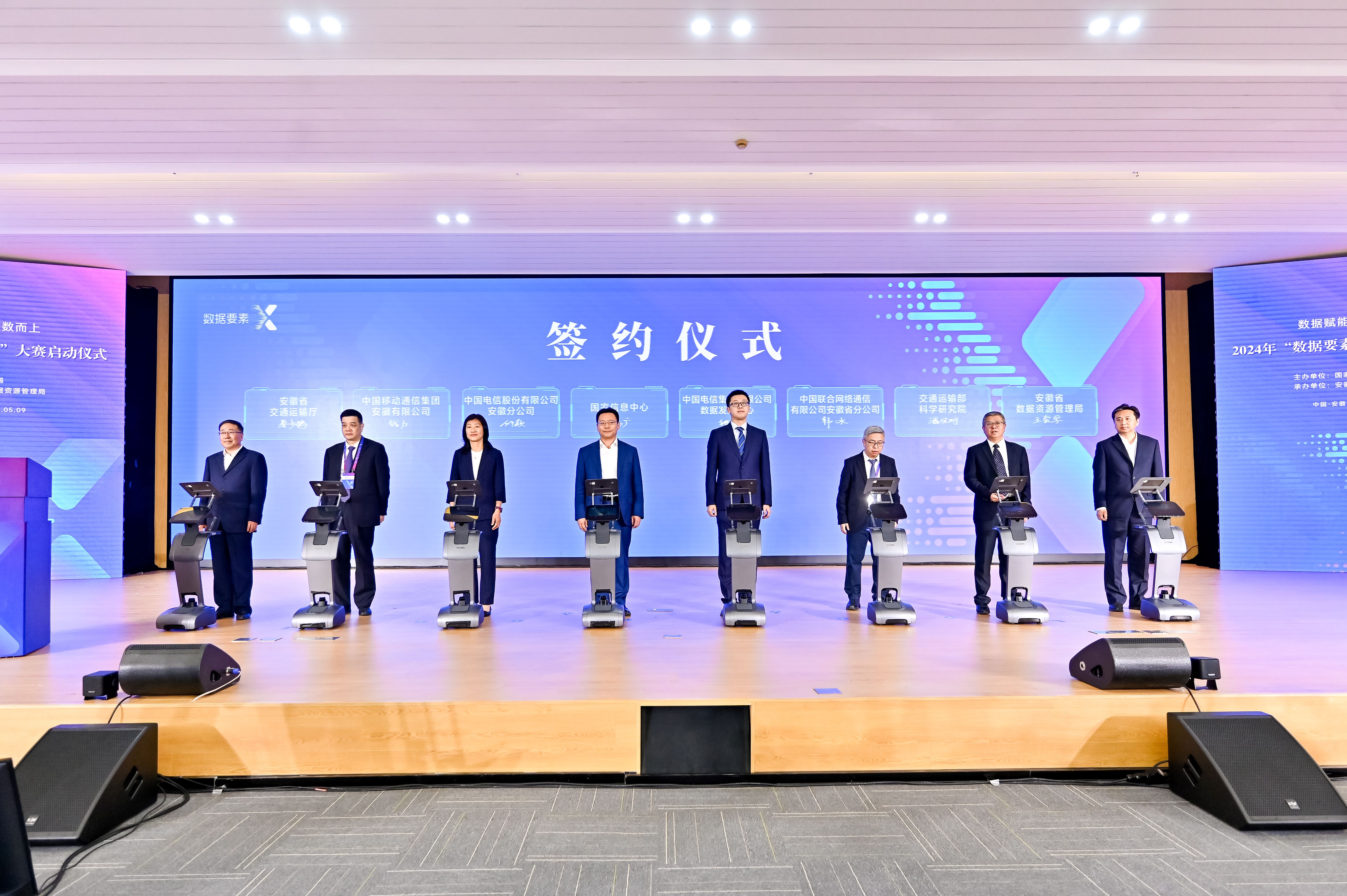 启动仪式上,潘凤明副院长代表我院与安徽省数据资源管理局、安徽省交通运输厅签署战略合作协议。签约三方将共同办好2024年“数据要素×”大赛安徽分赛,推动数据要素高效流通和开发利用,打造交通运输典型场景的创新应用案例,努力探索数据要素市场化、价值化的安徽模式,激活数据要素潜能,催生新业态、新模式、新动能,培育交通运输新质生产力,助力数字安徽和交通运输高质量发展。