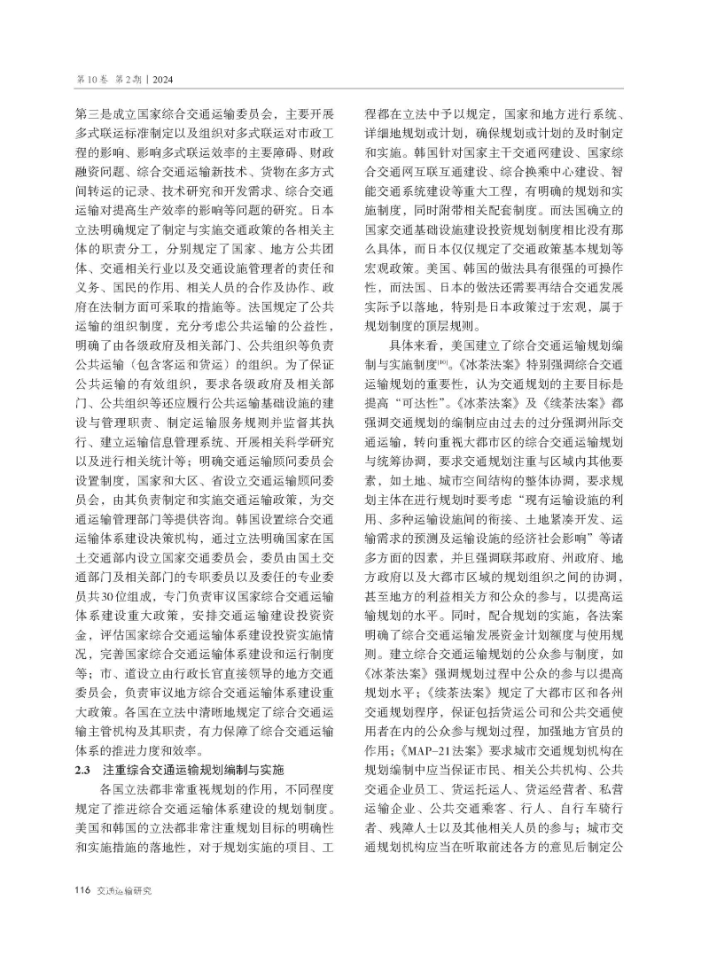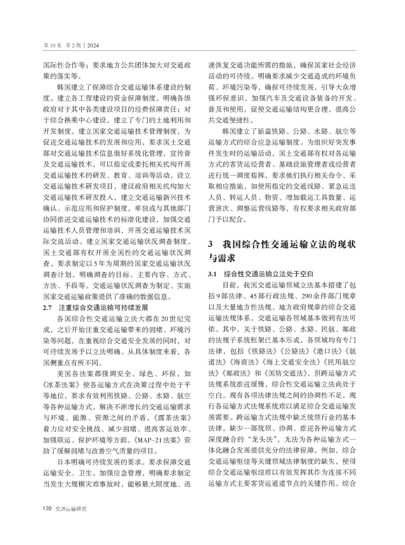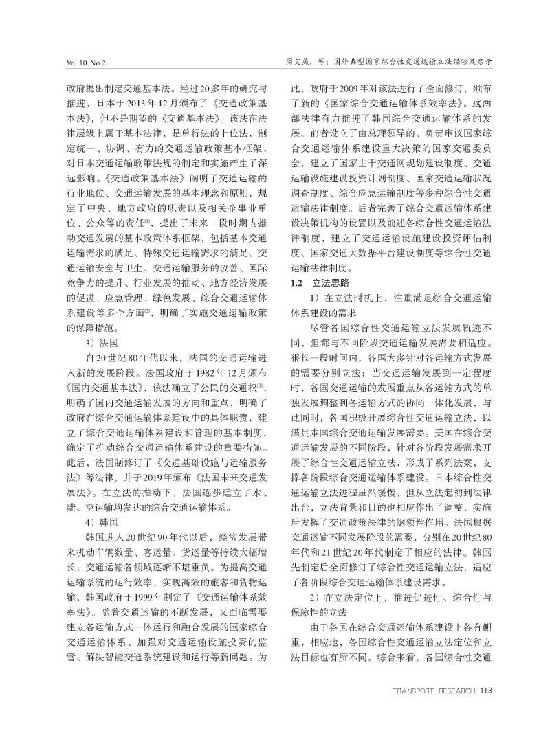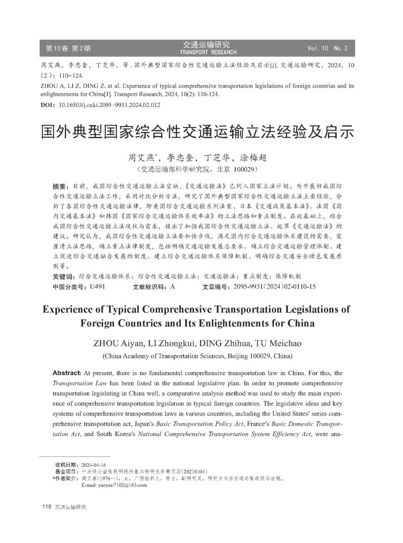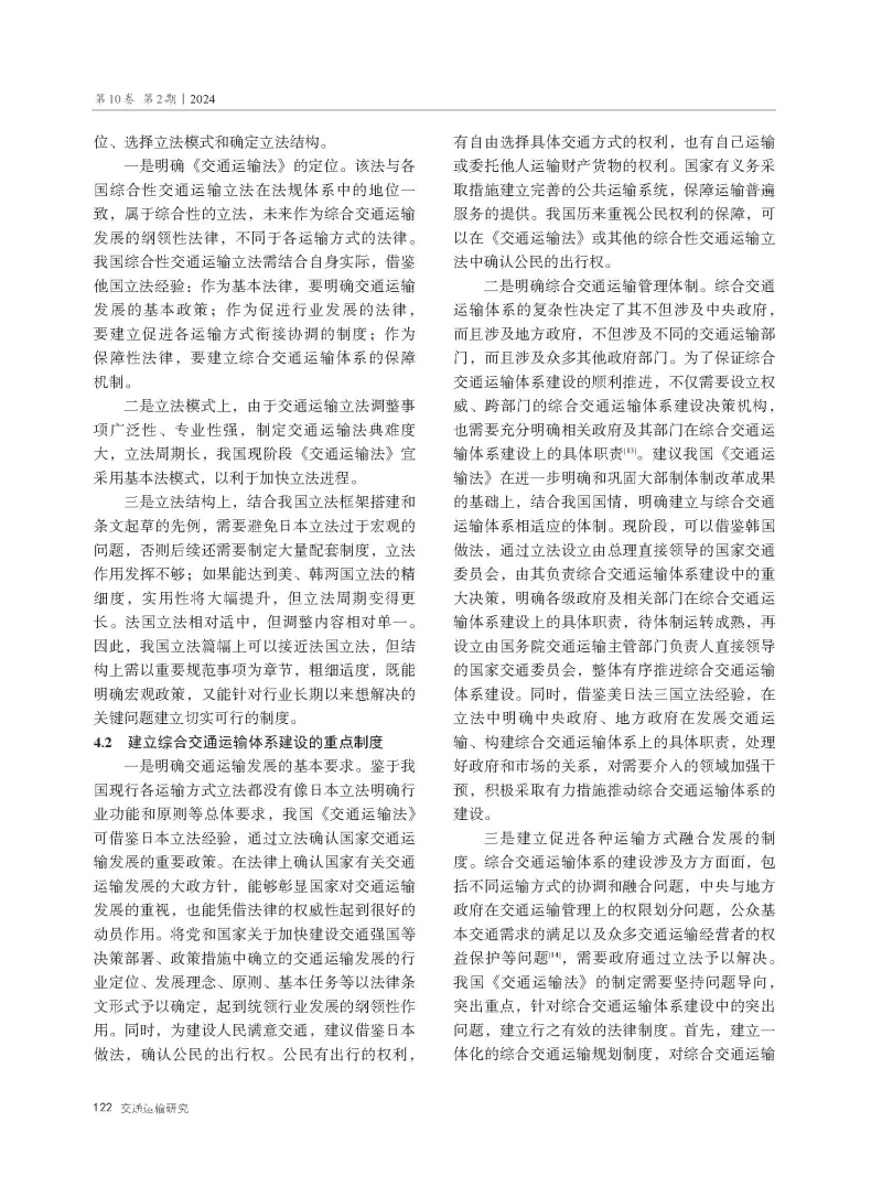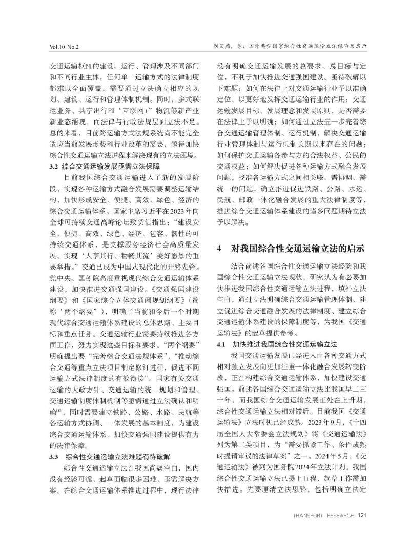国外典型国家综合性交通运输立法经验及启示