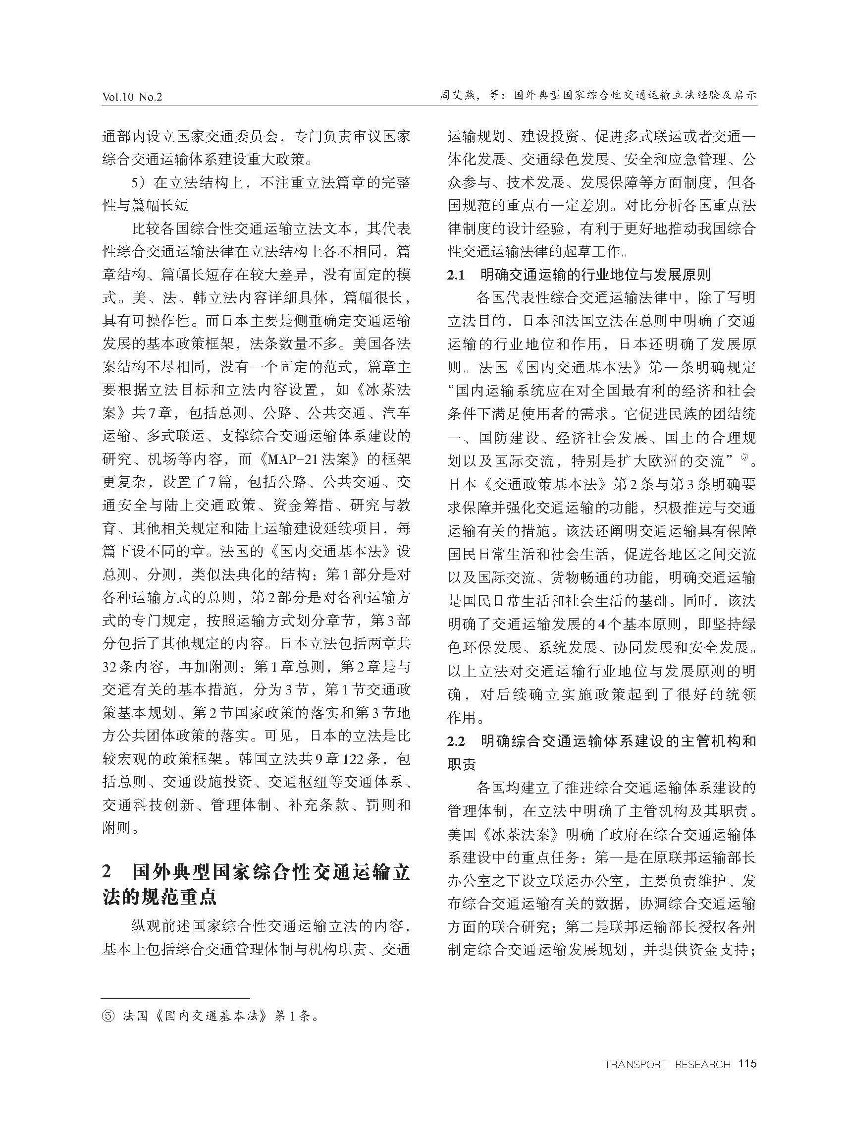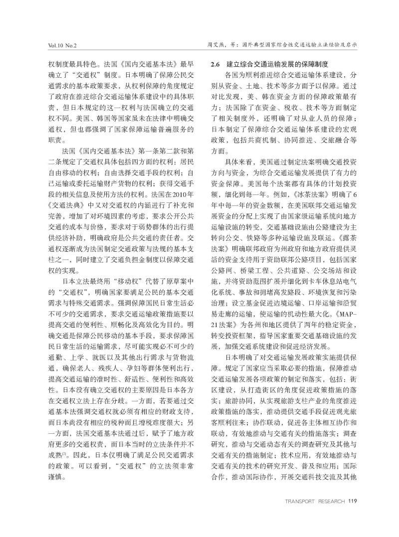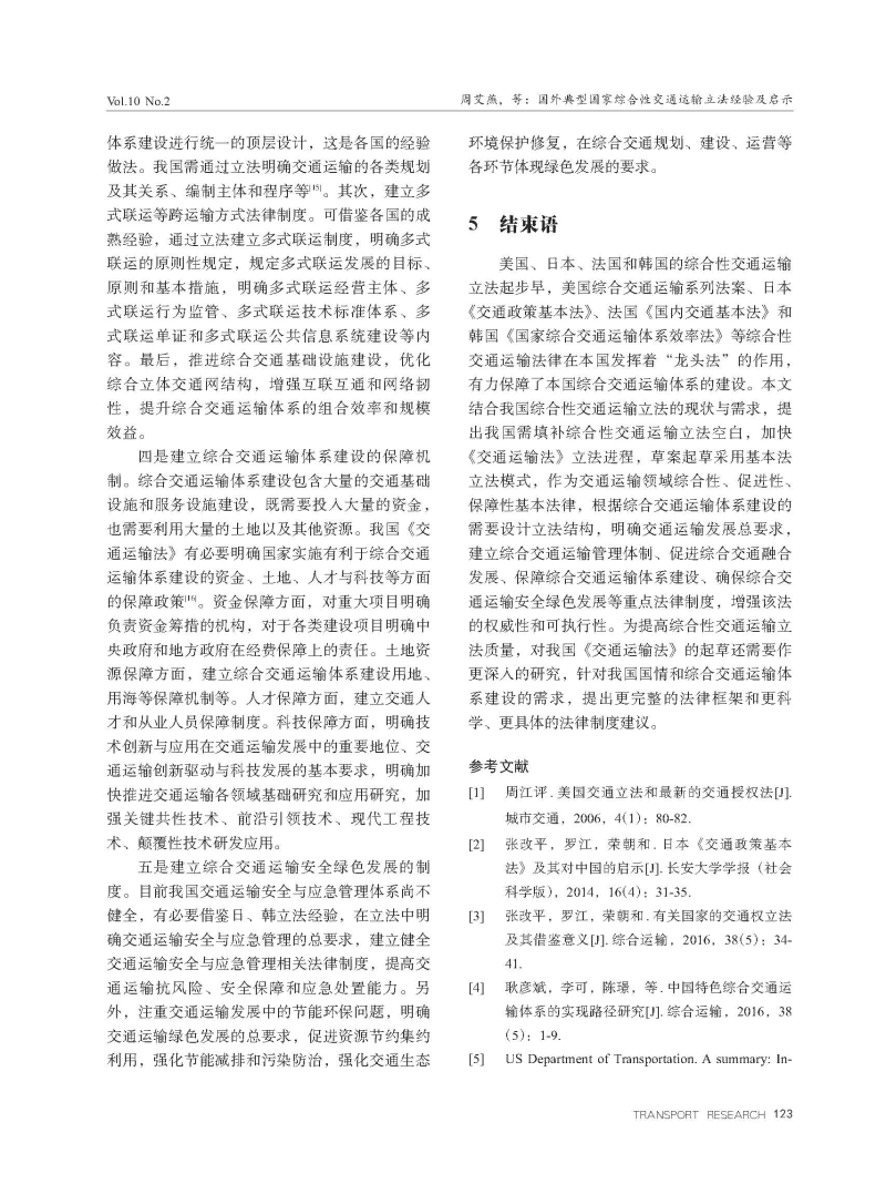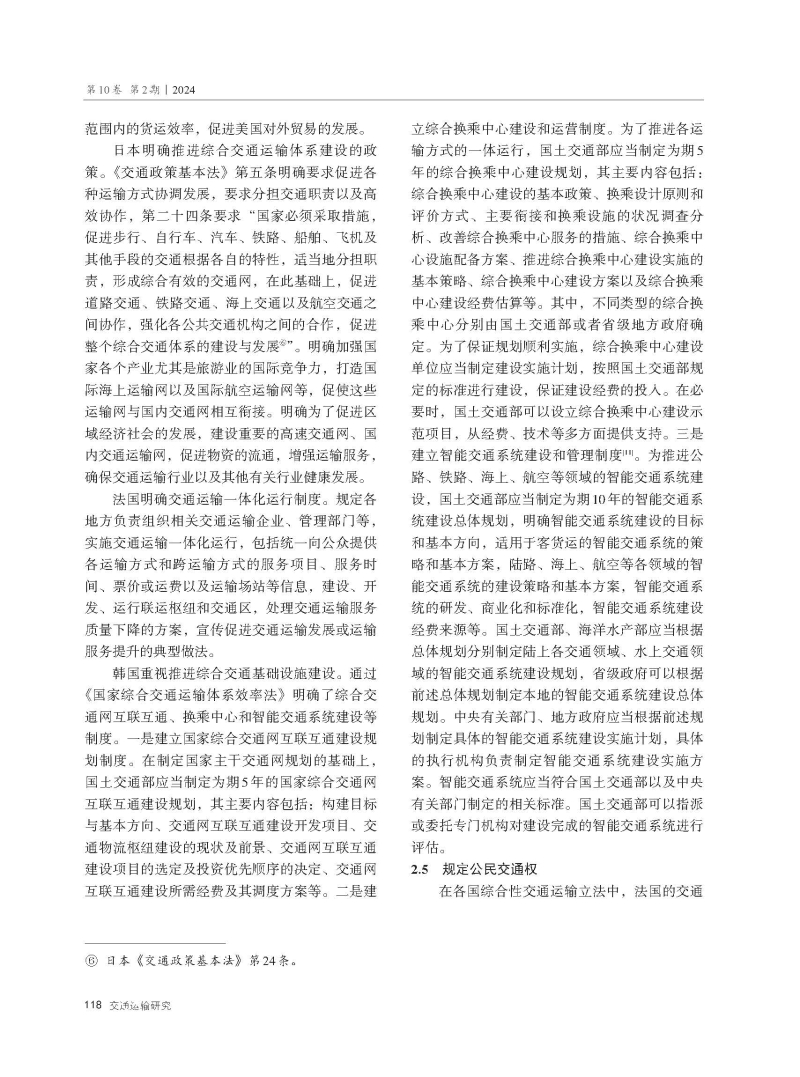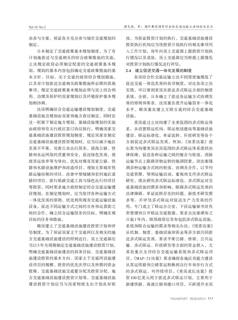 国外典型国家综合性交通运输立法经验及启示