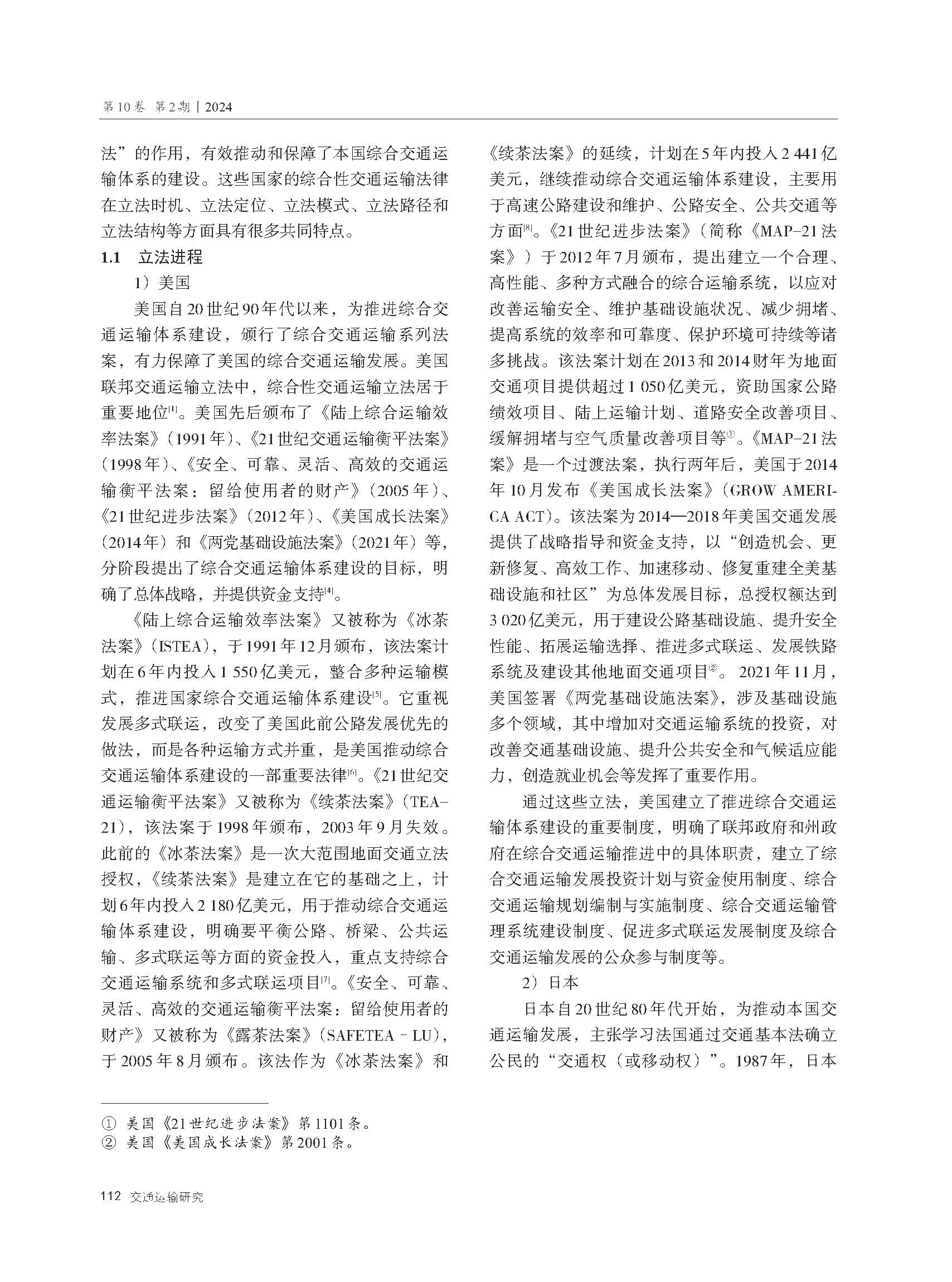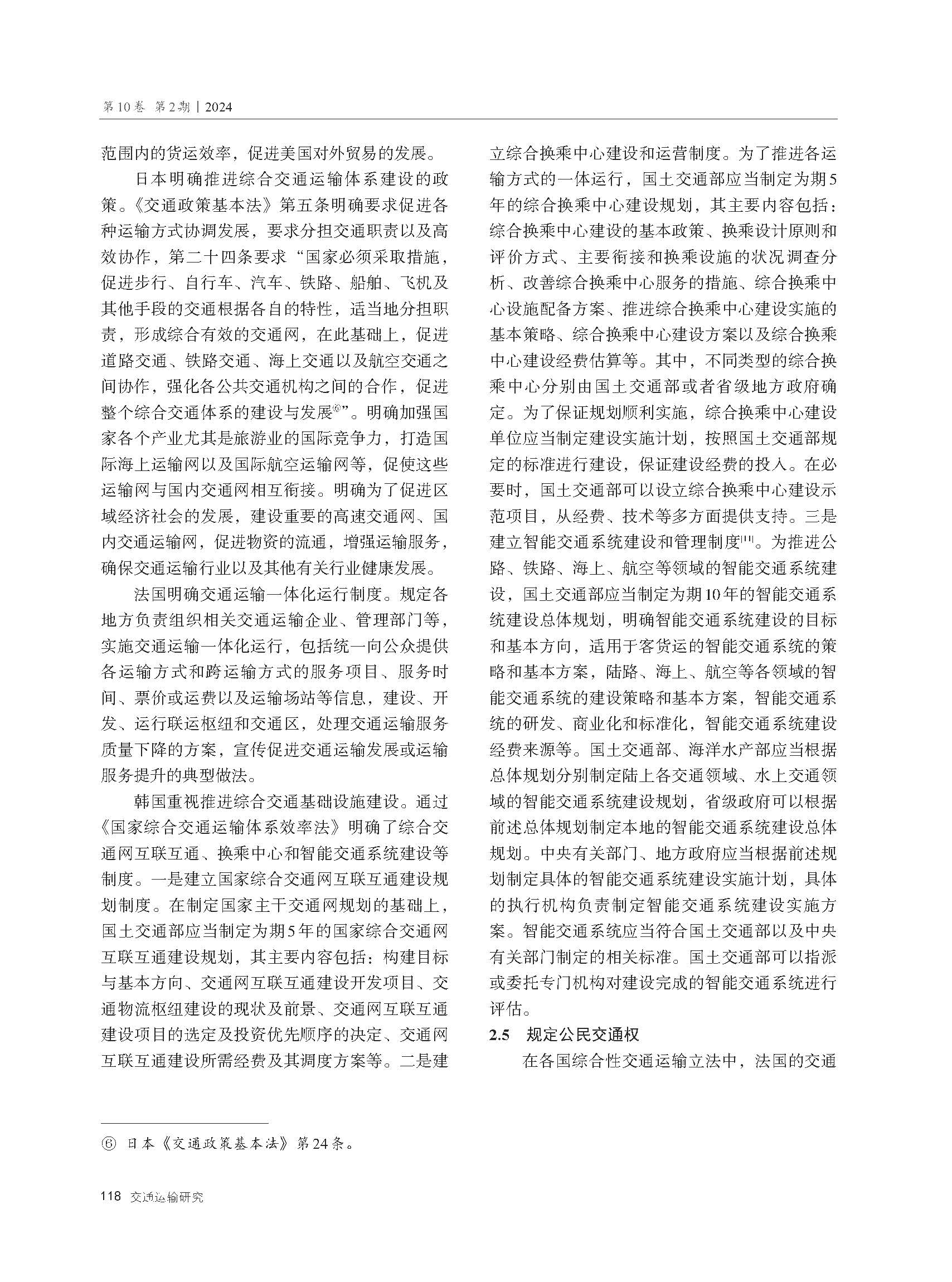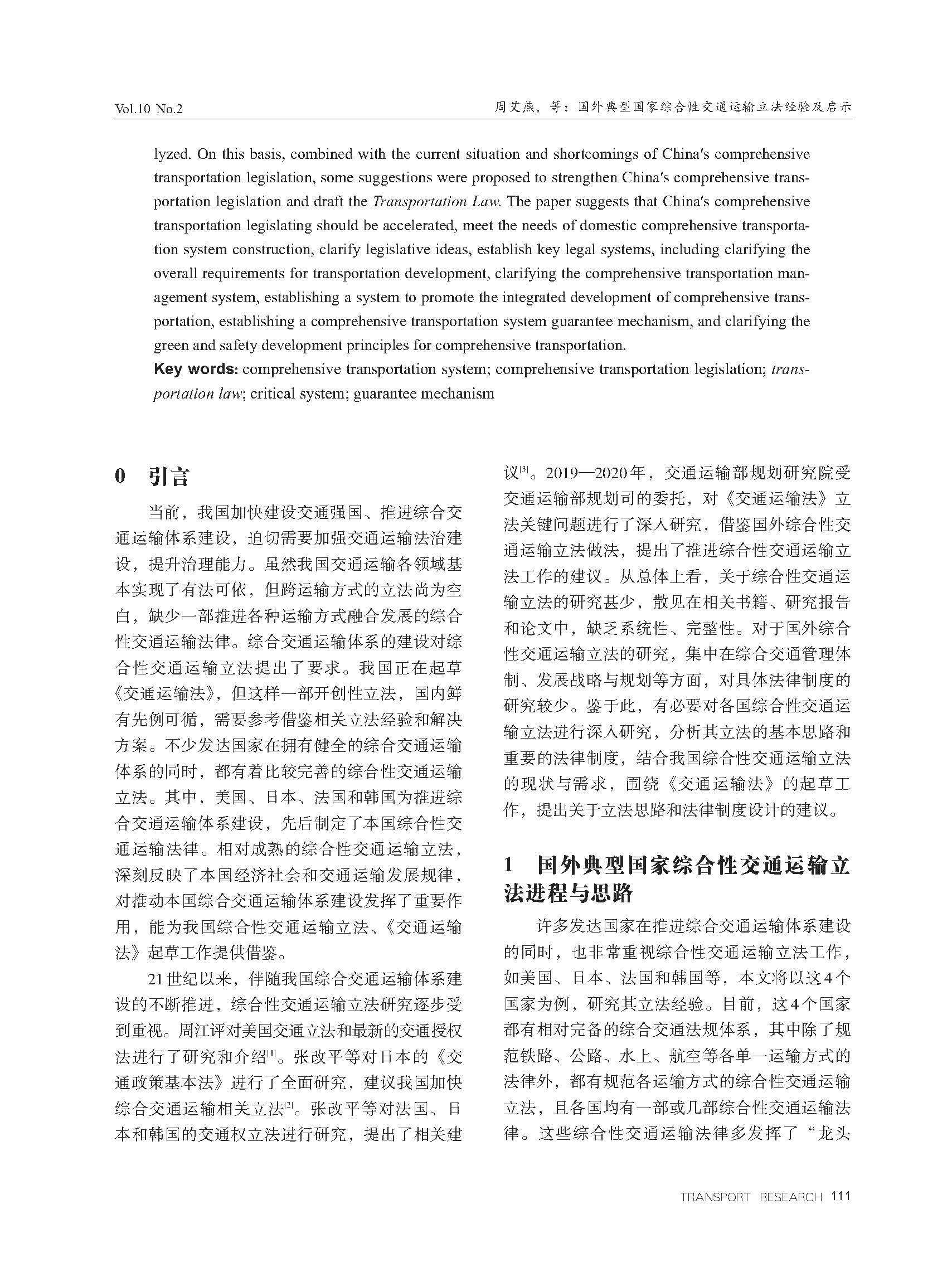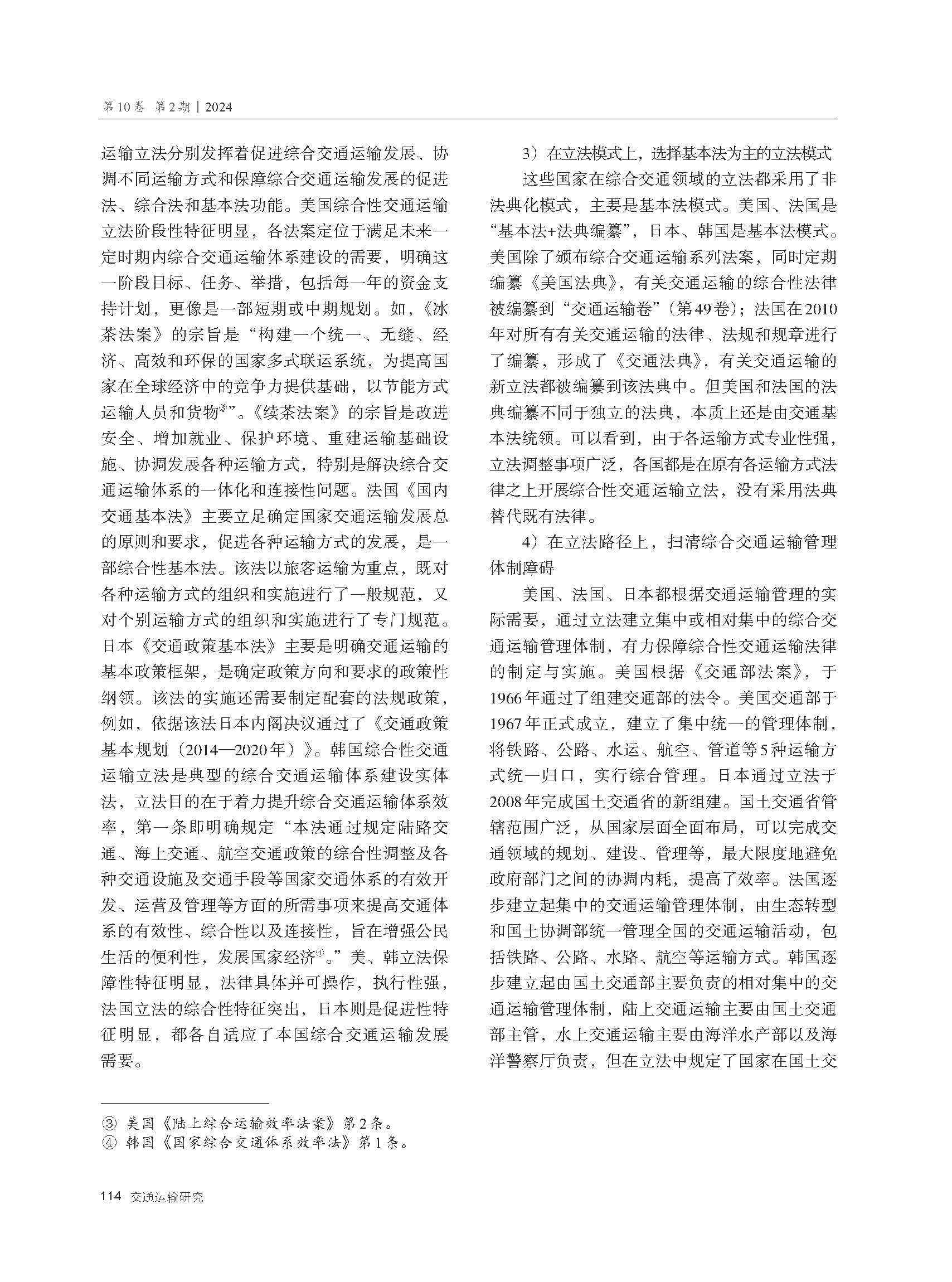 国外典型国家综合性交通运输立法经验及启示