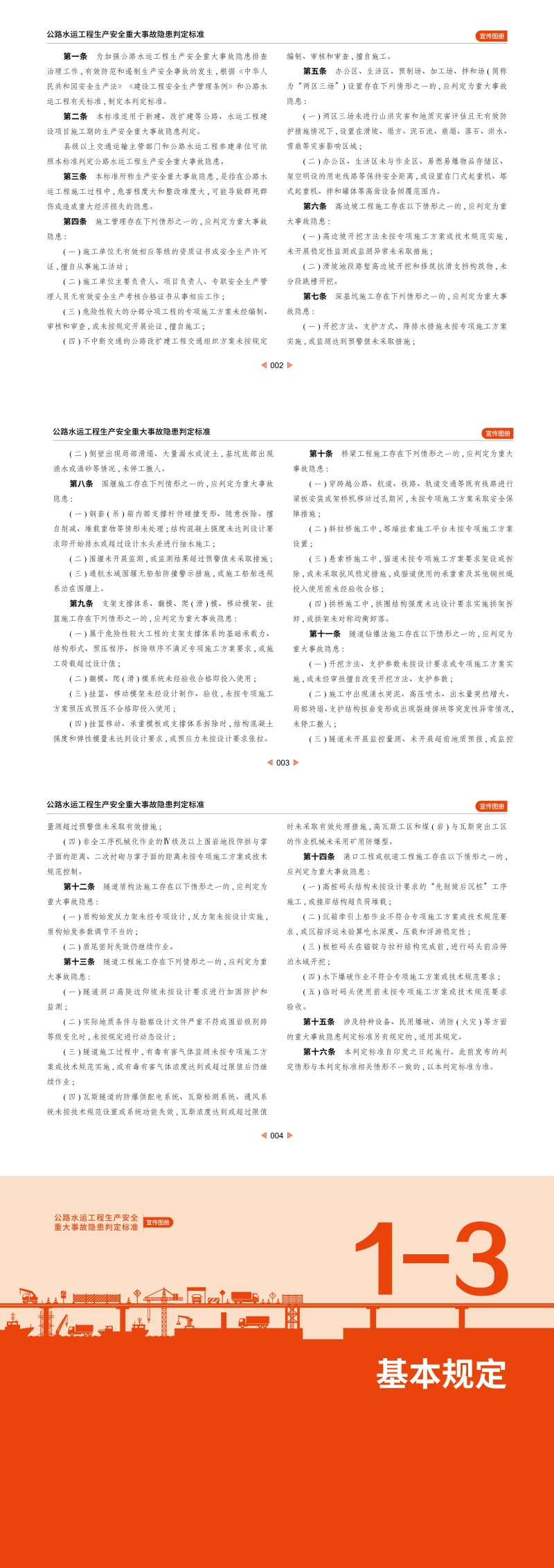 2025年4月,交通运输部发布了《公路水运工程生产安全重大事故隐患判定标准》(以下简称《判定标准》)。为加强《判定标准》的贯彻落实和宣传解读,交科院安全中心组织编制了《<公路水运工程生产安全重大事故隐患判定标准>宣传图册》(以下简称《宣传图册》)。