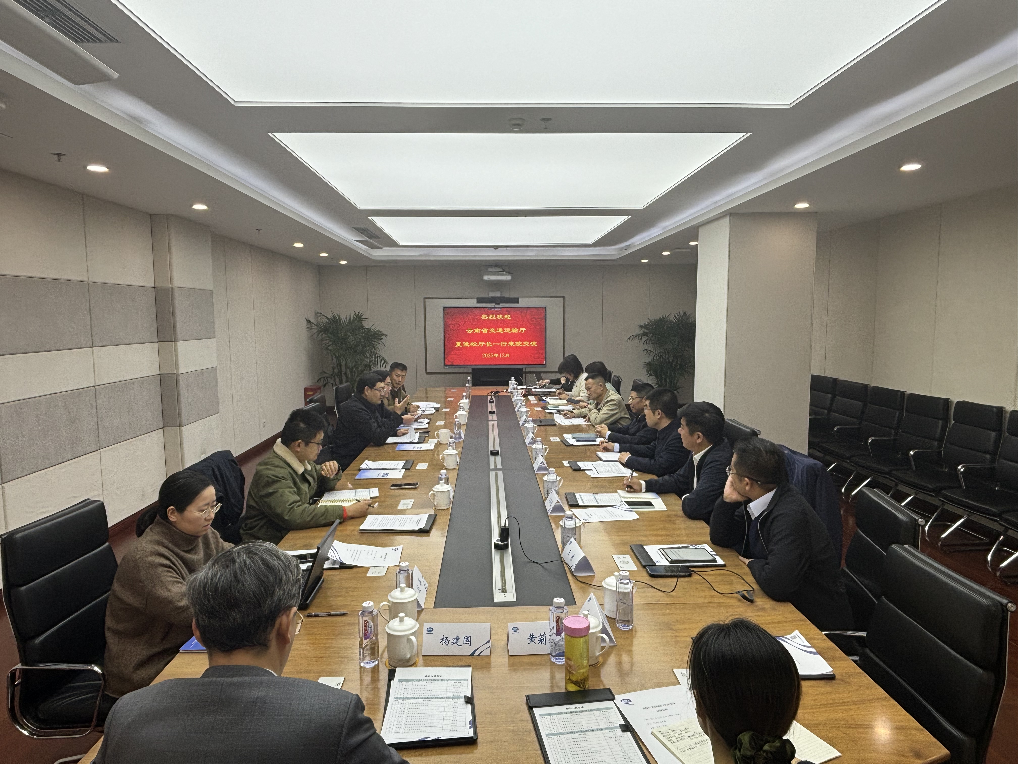 12月11日,云南省交通运输厅党组书记、厅长夏俊松一行来我院调研交流。调研座谈会由院长陈济丁主持,副院长兼总工程师王先进、云南省交通运输厅党组成员樊东方、云南省交通投资建设集团有限公司副总经理李晶哲及双方相关部门负责人参加会议。