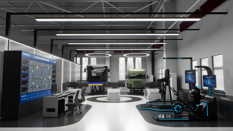 实验室功能区:交通参与者感知与人因分析实验区、多交通对象联机与交互协同仿真实验区。