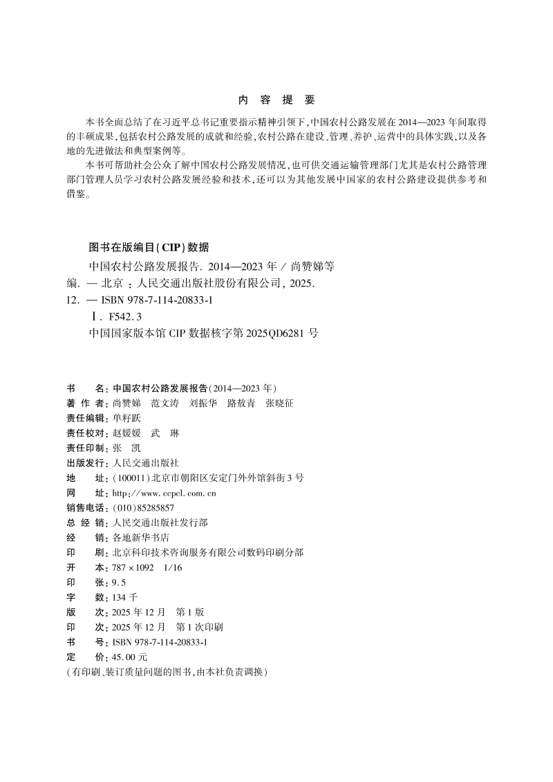 中国农村公路发展报告(2014-2023)