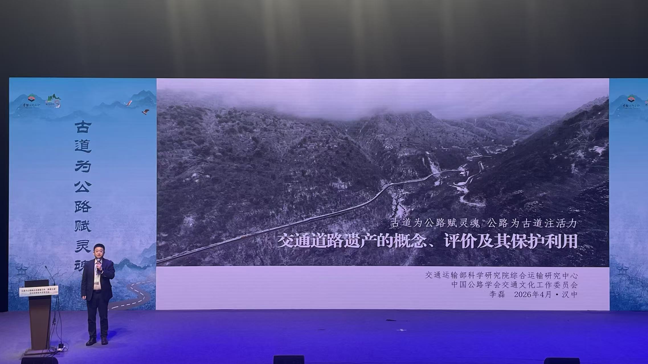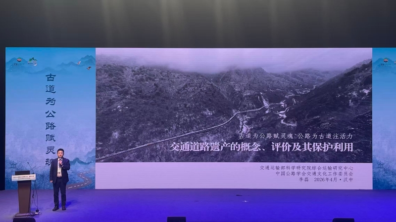 近日,“古道与公路融合发展暨汉中‘秦蜀古道’活化利用学术交流活动”在陕西省汉中市成功举办。 为系统总结工作经验、推动交通文化繁荣发展,促进交通道路遗产的科学保护与活化利用,由中国公路学会交通文化工作委员会牵头、我院综运中心全面技术支持,联合中国古迹遗址保护协会文化线路保护研究专业委员会和汉中市交通运输局、文化和旅游局,共同举办了本次学术交流活动。陕西省交通运输厅副厅长李涛、汉中市副市长李宽、交通运输部原总工程师周伟出席活动,来自全国各地的交通运输、遗产保护、文化旅游等行业专家学者,以及汉中市交通、文保、旅游等系统的400余人参加活动。 综运中心主任田春林主持活动 综运中心高级工程师李磊作主题发言
