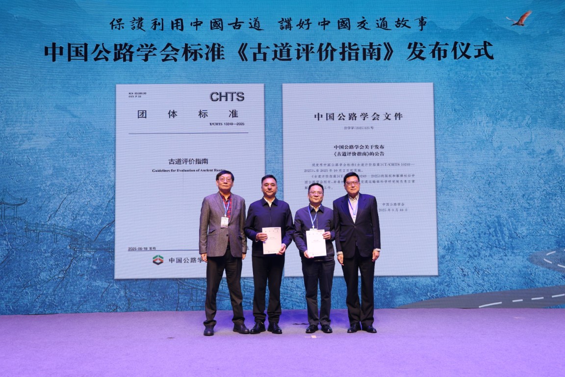 主旨报告环节由综运中心主任田春林主持,著名秦汉史、交通史专家,中国人民大学荣誉一级教授王子今,交通运输部综合规划司原巡视员、中国交通运输协会交旅融合发展分会会长于胜英,中国旅游协会生态旅游分会会长、北京大学教授吴必虎,分别从历史、交通和旅游三个领域作了精彩的学术报告。在专题研讨环节,综运中心高级工程师李磊作了《交通道路遗产的概念、评价和保护利用》主题发言,并主持了“古道与公里融合发展:古道为公路赋灵魂,公路为古道注活力”圆桌讨论。 活动现场发布了由我院牵头主编的中国公路学会标准《古道评价指南》。这是我国交通运输行业首部古道综合评价的技术标准。 近年来,综运中心致力于交通运输行业文化遗产保护利用研究,取得了一系列丰硕成果,在业界产生了较为广泛的影响。活动的成功举办,不仅对外宣传了我院的理论研究和工作实践,进一步巩固了我院在交通遗产研究领域的领先地位,而且更为我院在“十五五”期间深入参与行业交通运输文化遗产保护和活化利用工作奠定了坚实基础。